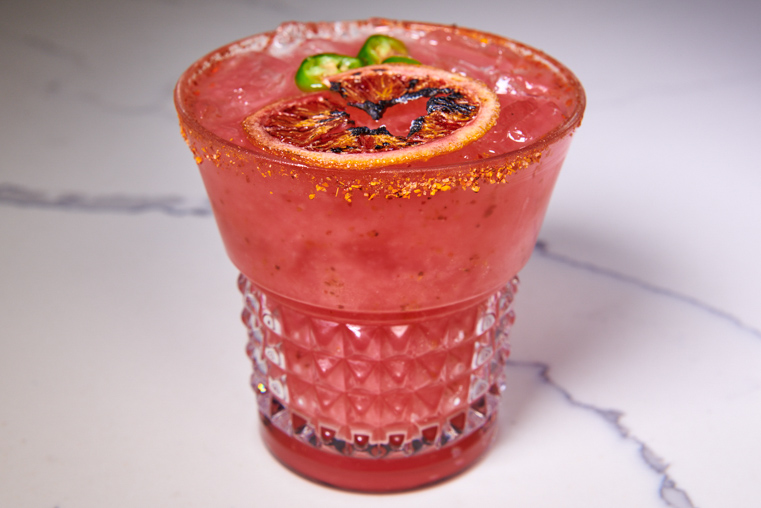 Illegal Mezcal, raspberry puree, serrano peppers, chilly salt rim.