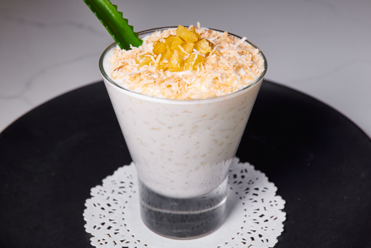 Toasted sweet coconut flakes and rum caramelized pineapple.