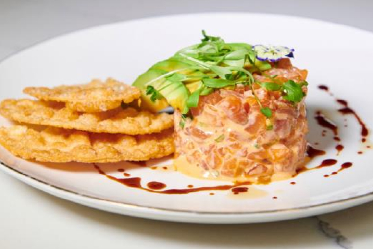 Duck meat confit in hoisin BBQ, spicy guacamole, pico de gallo and served on crispy wonton shells.