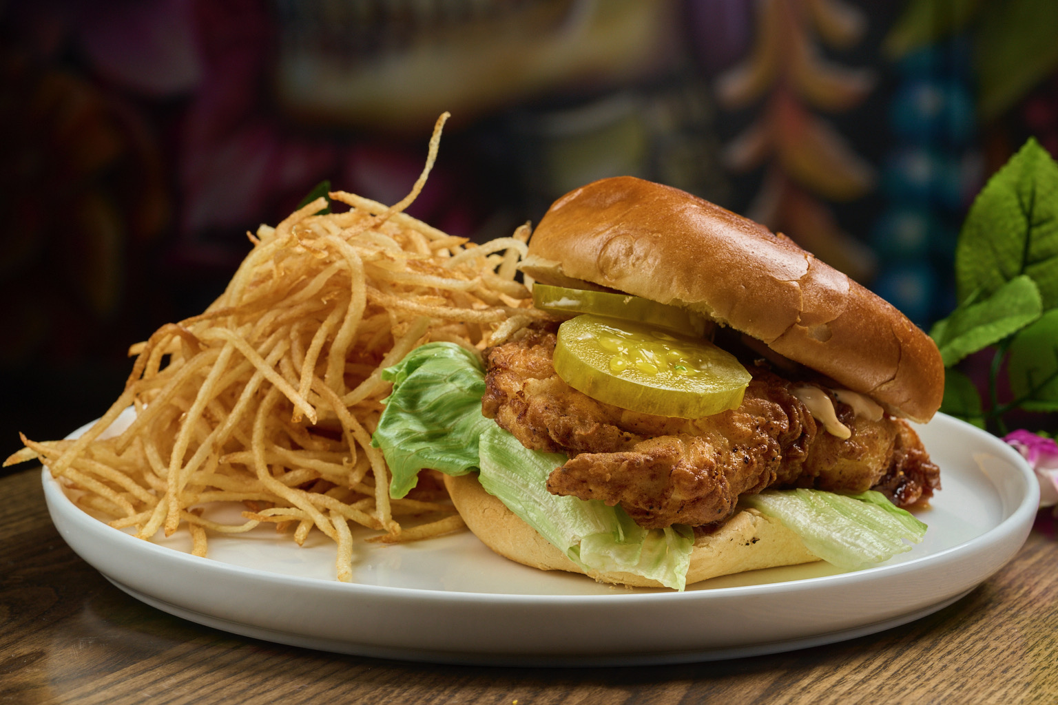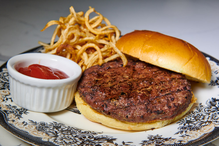Half pound ground prime beef, Woodford bourbon, caramelized onions, gruyere cheese, lettuce, tomato, onions, pickle, fries, chipotle mayo and served on toasted potato bun.