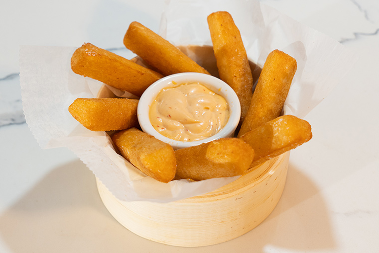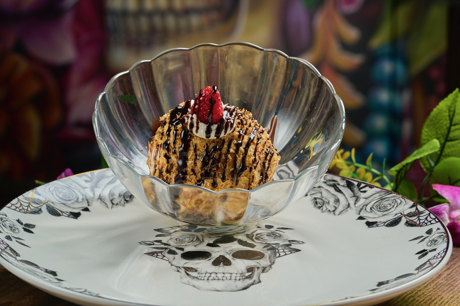 Crispy churros dusted in cinnamon sugar and served with creme anglaise & chile ancho chocolate sauce.