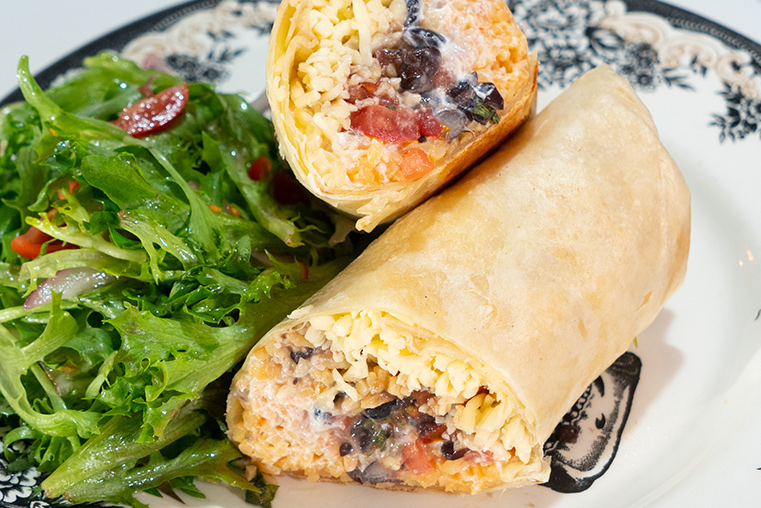 Grilled vegetables, sofrito rice, Chihuahua cheese, sweet corn, fried beans, guacamole, pico de gallo, small House salad and choice of spicy salsa.
