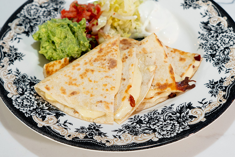 Chihuahua cheese served on flour tortilla, with shredded lettuce, pico de gallo, guacamole and cremates fresca.