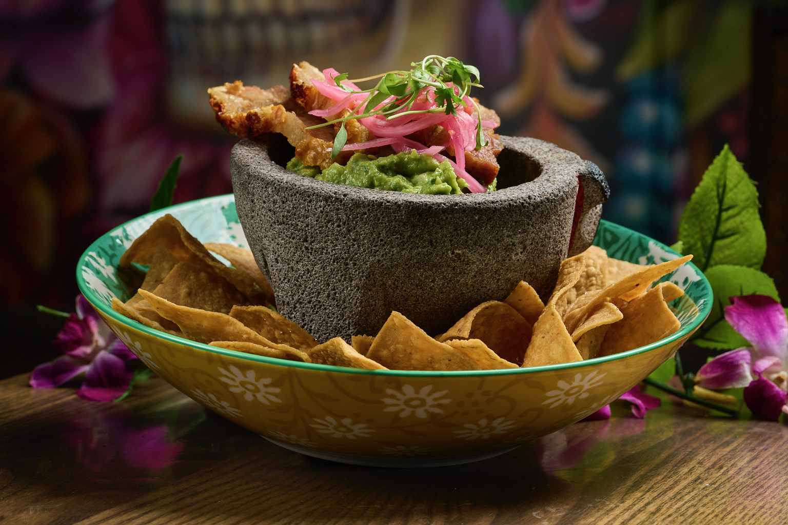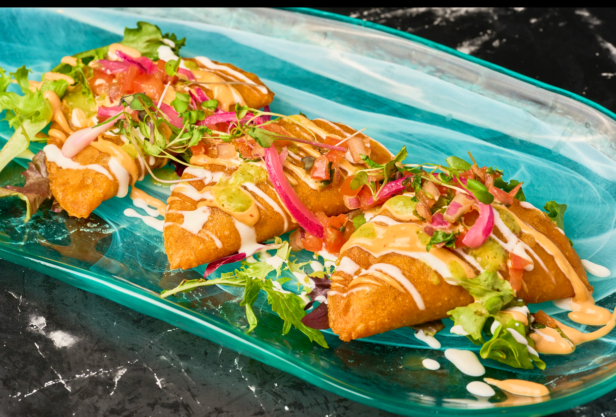 Tender and crispy and the same time pork belly topped with fresh cilantro, pickle red onions, aluces avocado and a hint of lime for the perfect balance of savory and crisp.
